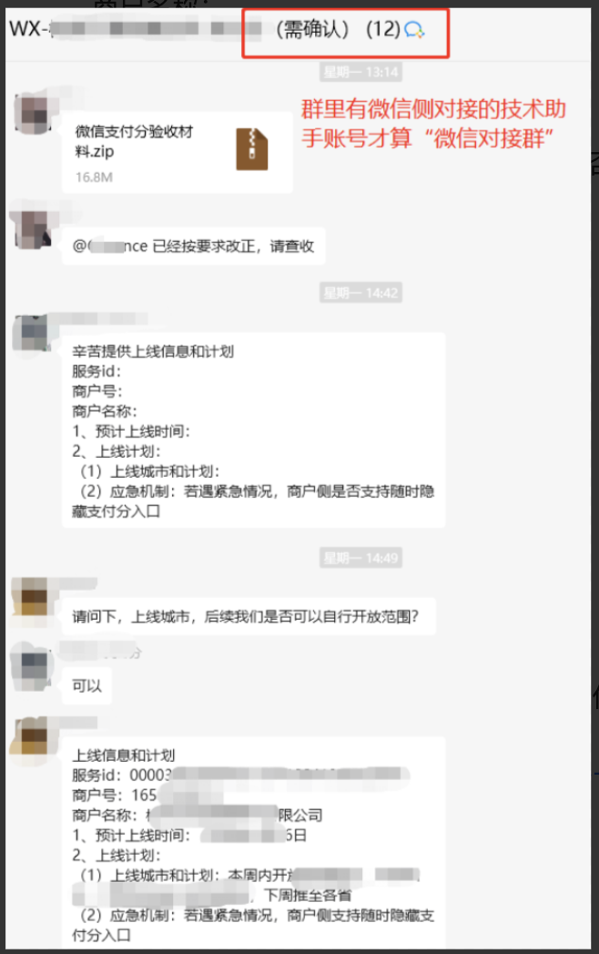 ## 背景 天士力配置微信收款,天士力是新北洋服务商下的二级商户,进件是微信普通服务商下,使用的是天士力自己的小程序。此种类型的商户配置支付,流程和二级商户配置收款账号不一致,具体看如下流程 微信普通服务商支付分ID--新增特约子商户绑定:https://docs.qq.com/doc/DTG5FQ2hiU0F4b0Fn?u=efe9ea47204144abac91750fd284248d&nlc=1 ## 天士力商户类型配置收款账号操作流程 配置收款账号流程:1、商户进件 ➡ 2、给微信发送绑定APPID邮件 ➡ 3、配置支付参数 ## 一、商户进件流程 商户是通过微信普通服务商进件,具体进件查看:https://mrdoc.renrenqu.com/project-2/doc-352/?highlight=微信进件 ## 二、绑定APPID整体流程 微信普通服务商支付分ID--新增特约子商户绑定:https://docs.qq.com/doc/DTG5FQ2hiU0F4b0Fn?u=efe9ea47204144abac91750fd284248d&nlc=1 #### 一、申请条件 1、特约子商户号的客服电话需完成认证 当前申请支付分的商户号必须完成认证客服电话认证,后续未认证提交过来的申请将会延期到下周处理,务必要认证客服电话,否则将会延期一周处理 商户客服电话认证指引:https://kf.qq.com/faq/1709123am2qa1709122mMR7N.html (接听到微信客服回拨电话验证才算认证成功) 特殊情况说明: 若申请商户线上客服电话认证不通过,或修改认证拨测仍未通过时,可通过线下邮件申请完成。申请方式:邮件申请客服电话认证修改,申请完群里同步下。 2、确保子商户是进件到服务商下完成签约认证,否则不支持绑定 普通服务商特约子商户进件API: https://pay.weixin.qq.com/docs/partner/apis/contracted-merchant-application/applyment/submit.html 3、确保服务商号和子商户号与APPID后台已关联绑定 https://kf.qq.com/faq/190715yaYnYv1907153mmIbA.html   4、特约子商户无违规 商户号超管查询路径(移动端):商户号超级管理员微信打开“微信支付商家小助手”小程序->风险处理->违约处理记录 5、绑定规则【必看】 ●子商户绑定服务商支付分id,是用服务商appid开展支付分业务,可参考此文档【二】步骤发起申请,支付分id配置信息是 子商户号+服务商appid ●子商户用自己的小程序开展支付分服务,就得申请普通服务商模式下的独立支付分id,支付分id配置信息是:子商户号+子商户appid; 申请流程参考【https://docs.qq.com/doc/DTEVJdVF2TUlTb25z -(三、2.3)子商户申请独立id流程】 需确保【用户实际使用服务的小程序名称 和用户授权支付分确认页面展示的服务商家名称一致】 支付分订单页面服务名称示例图:  #### 二、邮件申请 说明:提交邮件前请先检查子商户是否已完成入驻,!如提交信息错误延期下周一起处理,请知悉 1、标题: 【普通服务支付分ID--新增特约子商户】-服务商公司全称-时间 (标题务必按照要求提交,否则无法归类到对应邮箱,请知悉) 2、正文:将以下表格内容粘贴至正文中,勿以图片形式粘贴 https://docs.qq.com/sheet/DTENyS1RTSkFCcXpQ?u=e0ba629f59d3422bb3d5b276507d214b&nlc=1&tab=BB08J2 并且线上需填写该申请表: https://docs.qq.com/form/page/DTHJRZGtWT1drYXdn?u=efe9ea47204144abac91750fd284248d#/edit  3、附件: 1.设备实景照片:远景照(设备正面全景照)、近景照(展示清晰完整的物料) a.按照子商户物料使用样式种类提供,如都使用一样的物料可提供一份即可 b.设备物料需符合微信支付物料规范要求: 自助售货机微信扫码物料规范 https://pay.weixin.qq.com/index.php/public/cms/content_detail?platformType=0&lang=zh&id=134008 微信支付物料管理规范: https://pay.weixin.qq.com/index.php/public/cms/content_detail?platformType=1&lang=zh&id=135502 2.设备采购协议(如有可提供,非强制要求) 3.支付分订单务必按要求回传设备信息,未回传将拦截设备无法使用,详情要求可参考: https://pay.weixin.qq.com/index.php/public/cms/content_detail?platformType=0&lang=zh&id=133008 主送:wxpay_equipment@tencent.com 抄送:ariesxie@tencent.com、stefenshi@tencent.com、noahdu@tencent.com 、v_jajunchen@tencent.com、v_minchazhu@tencent.com、weixinpay_scoreBD@tencent.com、jeannieao@tencent.com、caddyliu@tencent.com 备注:统一每周五汇总处理绑定(请于周五前汇总提交商户资料),5-7个工作日内审核处理,请耐心等待~ [特约子绑定服务商支付分id后,需在2周内提供验收材料] ✧绑定支付分期间如果因风控问题驳回,需要走人工复审,处理时效会拉长,预计延长5-7个工作日,有问题也会及时同步商户。 4、绑定结果查询 绑定后商户自行关注服务商平台-产品中心-服务商支付分-特约商户授权产品(特约商户列表)-授权状态 5.绑定成功后服务商平台邀请子商户授权 https://docs.qq.com/doc/DY1N6SmF1UGpCZEdK?no_promotion=1 #### 三、材料验收 注意:现支付分验收上线时间统一调整为周二、周四,请各位商户耐心等待!!! ●验收材料:支付分第一人称、第三人称录屏、支付分订单进行中、取消、完成页截图。 ●验收材料发微信技术对接群里,并同时提供支付分id上线信息和计划,模板如下: 【支付分id上线信息和计划】 服务id: 商户号: 商户名称: 1、预计上线时间: 2、上线计划: (1)上线城市和计划: (2)应急机制:若遇紧急情况,商户侧是否支持随时隐藏支付分入口  ●【商户须知】微信支付分2022年场景订单传值内容指引:商户根据接入场景按照下列对应场景来传支付分订单内容 https://docs.qq.com/doc/DZHVZRlB5ckxxZEtH?&u=b75d8c7fcd134b73ba1f16b1af6f21b4 ## 三、配置支付参数 ## 一、移动端配置支付参流程 1、登录移动运营端进入首页,找到“其他-收款配置”菜单,找到“微信参数配置” > 注意: 1、商户只有